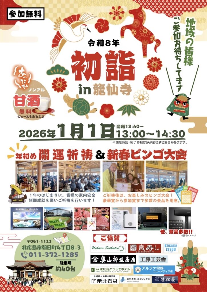 龍仙寺初詣「年初め開運祈祷・新春ビンゴ大会」が過去最多259名の皆様と新年を盛大にお祝いすることが出来ました。